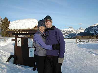 Lindsey and Sam at the end of a ski.