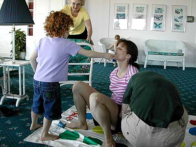 We engaged in some competitive Twister. Here Jennifer and husband Rennie go head to head. Their daughter Bailey seems to be siding with Mom while Dad plots a route to victory.