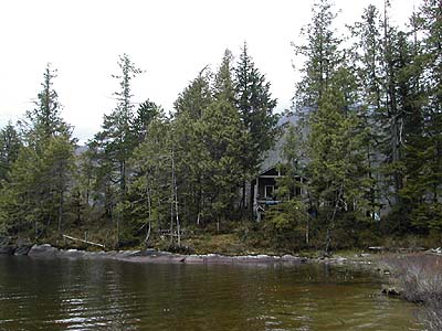 of Ellerslie Lake, a beautiful and very large lake just inland from the sea. The owner of the cabin normally takes a boat from Bella Bella
