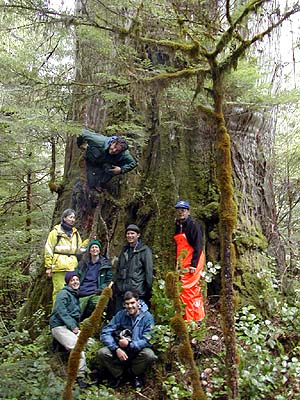 over 1,000 years old. The man in the orange rain pants is Chester "Lone Wolf" Starr. He's a local Heiltsuk guide and