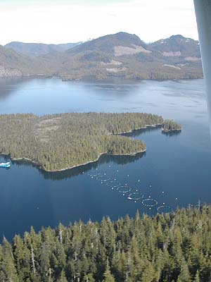 The circular nets are fish farms. This is other issue on the BC coast that's causing