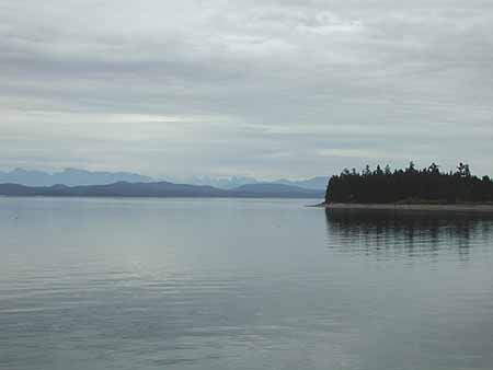 The coast range mountains can be seen in the distance. The rise up immediately on the mainland.