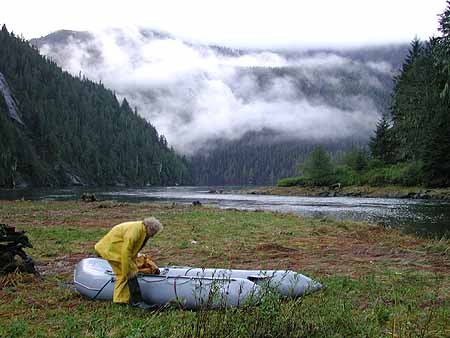 This is the mussle river as it spills into the inlet. We motored from the Blue Fjord to land and started