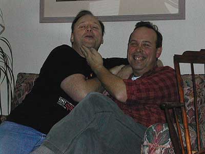 Sam's brothers Bob and Dave enjoying an intimate moment before dinner.