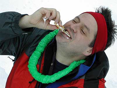 Here's Bob, the birthday boy. He often has this kind of trouble getting food into his mouth.