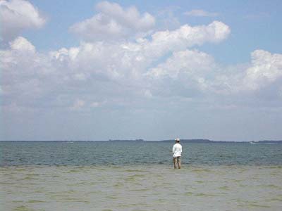 Ths shift in water color starts where the sand bar drops off. We stood on the sand shelf and fished the deeper water.