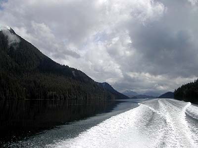 This is a salt water channel leading us to an island where wolf research is being conducted. Shortly after