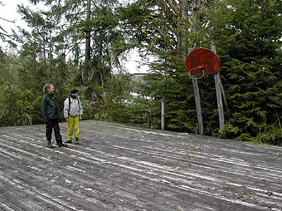 We found other treasures in the forest, including this cedar plank basketball court. I don't know who put it there, or how long it's been there. This was one of the oddest things I've ever seen.
