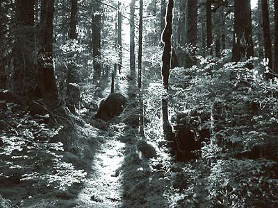 The forest becomes dense as soon as you step inside. We had no trouble making our way up river through this forest as a well worn bear trail lead the way.