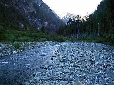 The north fork of the Quinault River. This is a short distance from the chalet in the heart of the Enchanted Valley. We made our camp next to the river and enjoyed the evening light.