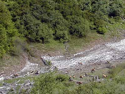 In the morning we woke to the sight of this Roosevelt Elk herd. The animals foraged among the young plants growing on the other side of the river.