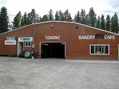 Towns are small and efficient. This building in Nimpo Lake serves a variety of purposes. We stopped in to pick up an order of fresh muffins.