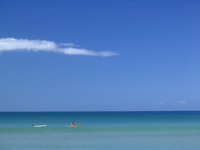 The beautiful waters of Hanalei Bay. If and when we return to Kauai, we plan to stay here. The village is very cute -- funky, even. And the bay is sheltered. There is enough wave action, however, for novice surfing.