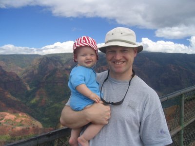 Sam and Finley at the rim of Waimea Canyon. Waimea is the largest canyon in the Pacific, measuring 10 miles long, one mile wide, and more than 3,500-feet deep. It is protected by Koke'e State Park.